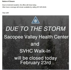 The Sacopee Valley Health Center is a fundamental element to providing healthcare, education, and access to basic needs in our community.