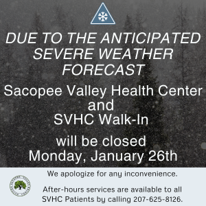 The Sacopee Valley Health Center offers comprehensive care to every member of your family from newborn to geriatric. We are honored to serve this community between the Saco and Ossipee Rivers of Maine and the White Mountains of New Hampshire. Sacopee Valley Health Center (SVHC) is a private, non-profit organization designated as a Federally Qualified Health Center with a local board of directors.